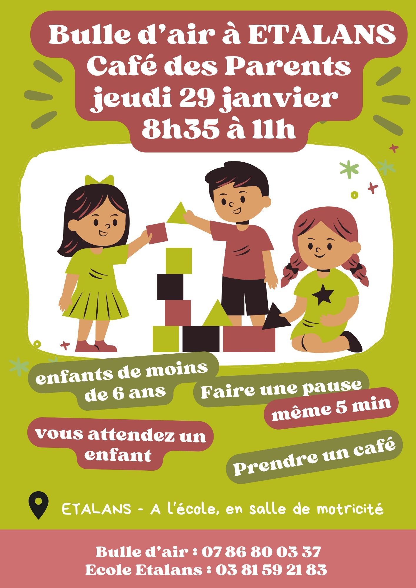 bulle d'air à Etalans et café pour les parents