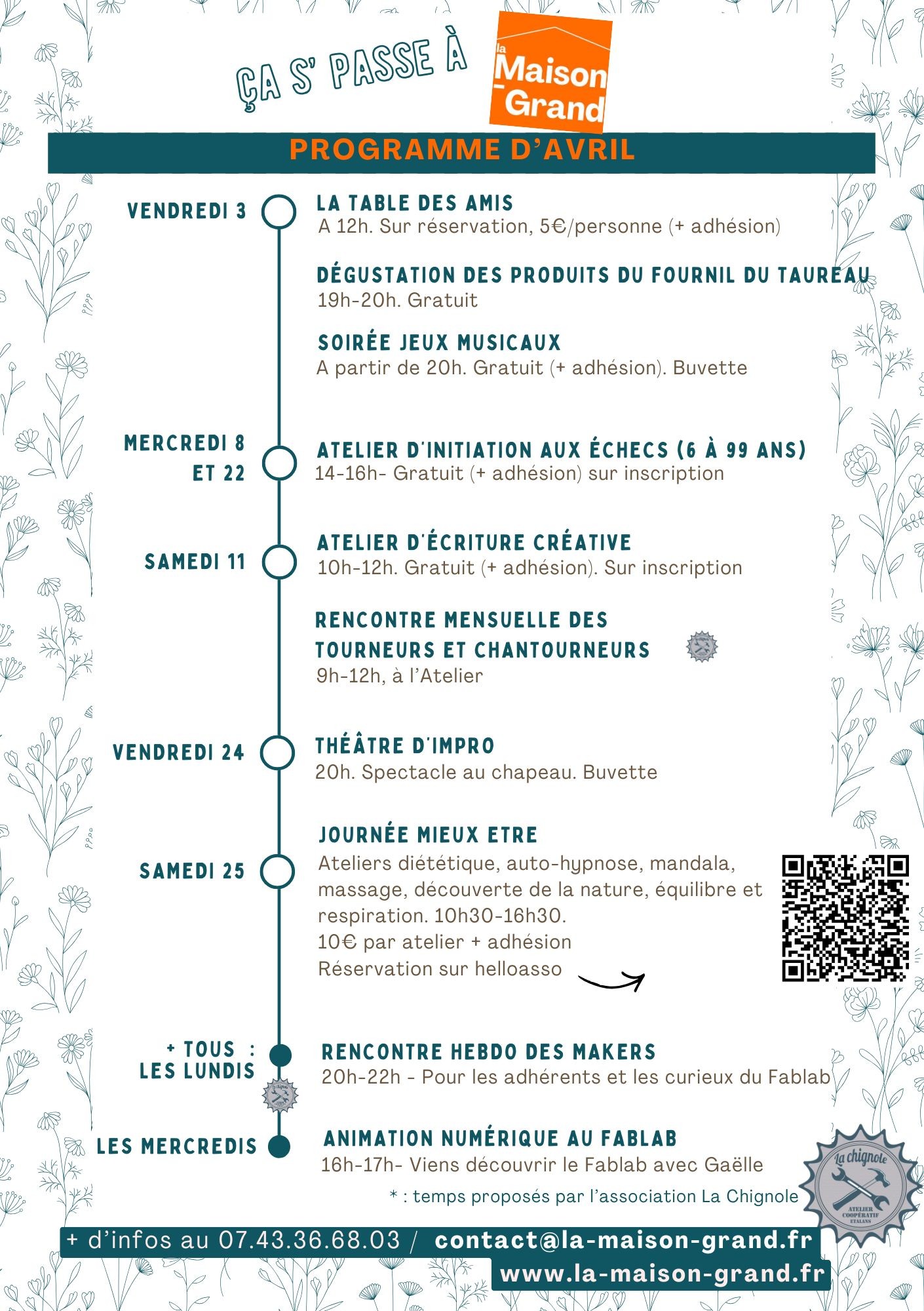 Bon nombre d’activités amusantes et conviviales sont à retrouver dans le programme d’avril de la Maison Grand.